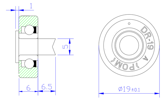 Plastic Drawer Roller DR19V5L6.5 Wheels DR19 For Cash Registers Picture and Drawing: